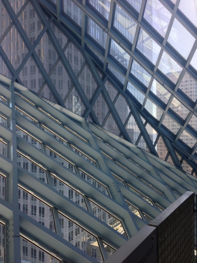I visited the Seattle Public Library. What a wonderful building! It is beautiful in an obtrusive, avant-garde kind of way. You can’t not look at it. From a street view it has this clever way of blending in to the other buildings but standing out at the same time when everything around it becomes small and boring. Inside doesn’t disappoint either. It has an industrial feel about. Lots of steel and concrete and exposed beams. Lots of bright colours too. I was overall underwhelmed with signage- from the looks of everything else I was expecting big, beautiful, inspiring signage but nothing really excited me. They had these great open reading areas which were really great. I feel like you could get lost in those stacks really easily!
