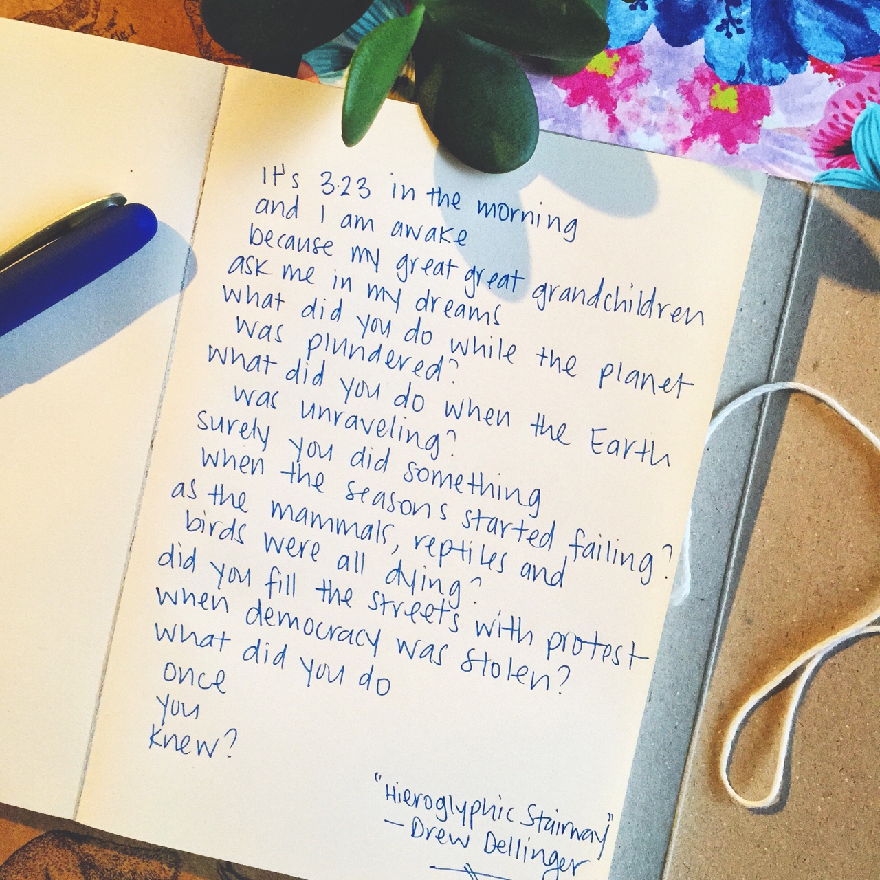I’m currently reading Bob Brown’s memoir which references this snippet of Drew Dillenger’s poem Hieroglyphic Stairway. The simplicity of his rhetoric overwhelms me with guilt and urgency. There’s a constant dichotomy inside my head in trying to balance what is comfortable and what is right and I’m yet to find the centre. I feel forever at odds with reconciling what my conscience says I should be doing versus what is actually in the capacity of just one person to achieve. I haven’t found my symmetry yet so let me ask you, what did you do?