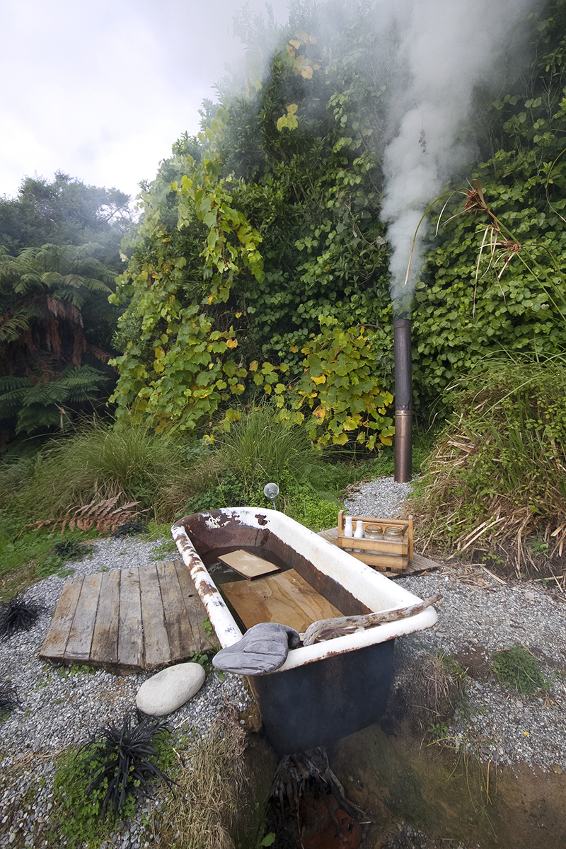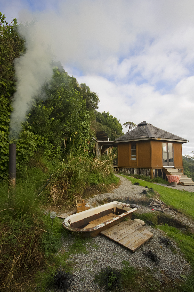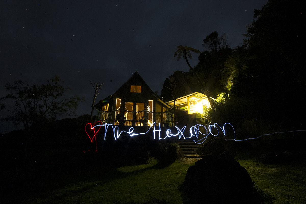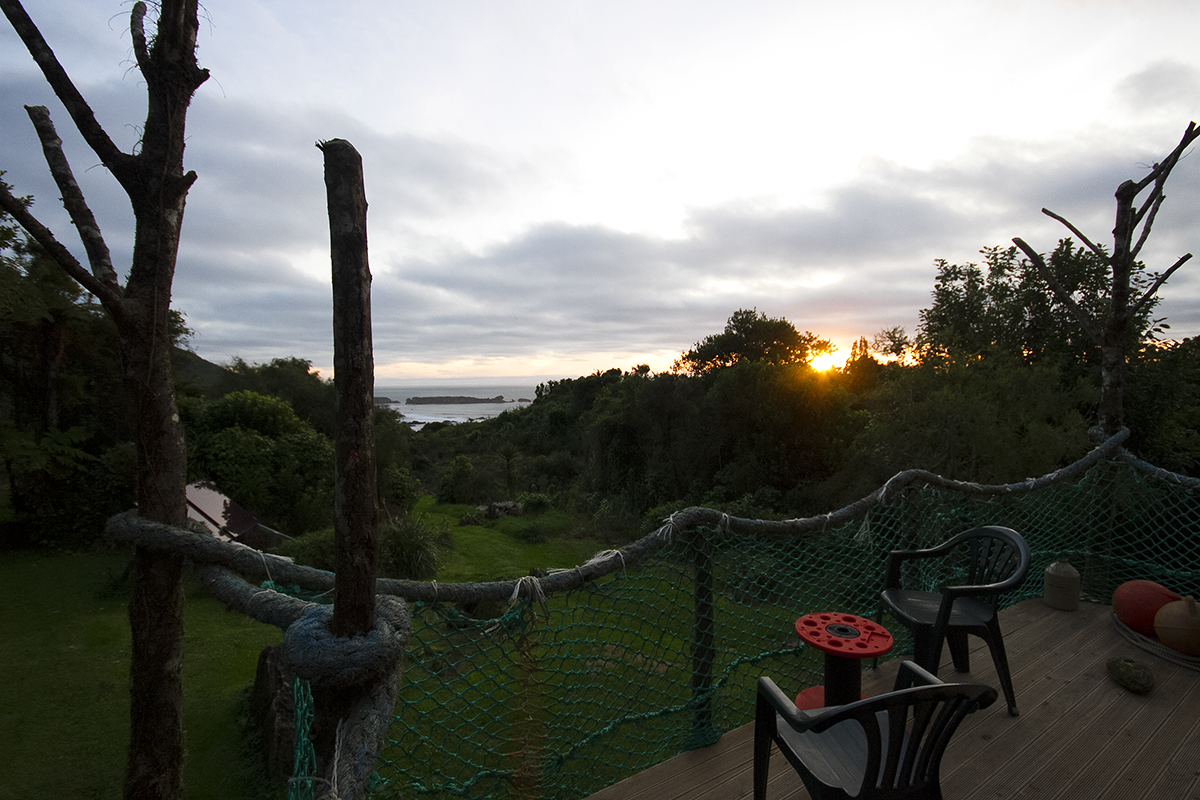 Boy oh boy did we pick well. The Hexagon is an off the grid eco cabin with solar power for basic essentials, an outdoor kitchen (the most fun kitchen I have ever cooked in, ever!) and bathroom and outdoor fire bath. The cabin has stunning ocean views and is nestled in a lush green haven on the private property of an old hippy commune from the 70s, now under the care of local artist, handyman and all-round legend, Jed. Surrounded by feijoa trees and cheeky weka birds, the two nights we spent here were completely and utterly peaceful. The cabin itself and all of its perks are made from recycled and local materials, everything from the beautiful timber benches to the vintage copper showerhead and the second-hand rope net sealing off the front balcony. There’s no wifi, no phone reception, no television. It is the perfect escape from the noise and ever present connectedness of our seemingly disconnected modern lives. I spent almost two whole days reading by the outdoor fire and sipping tea and it was entirely perfect.